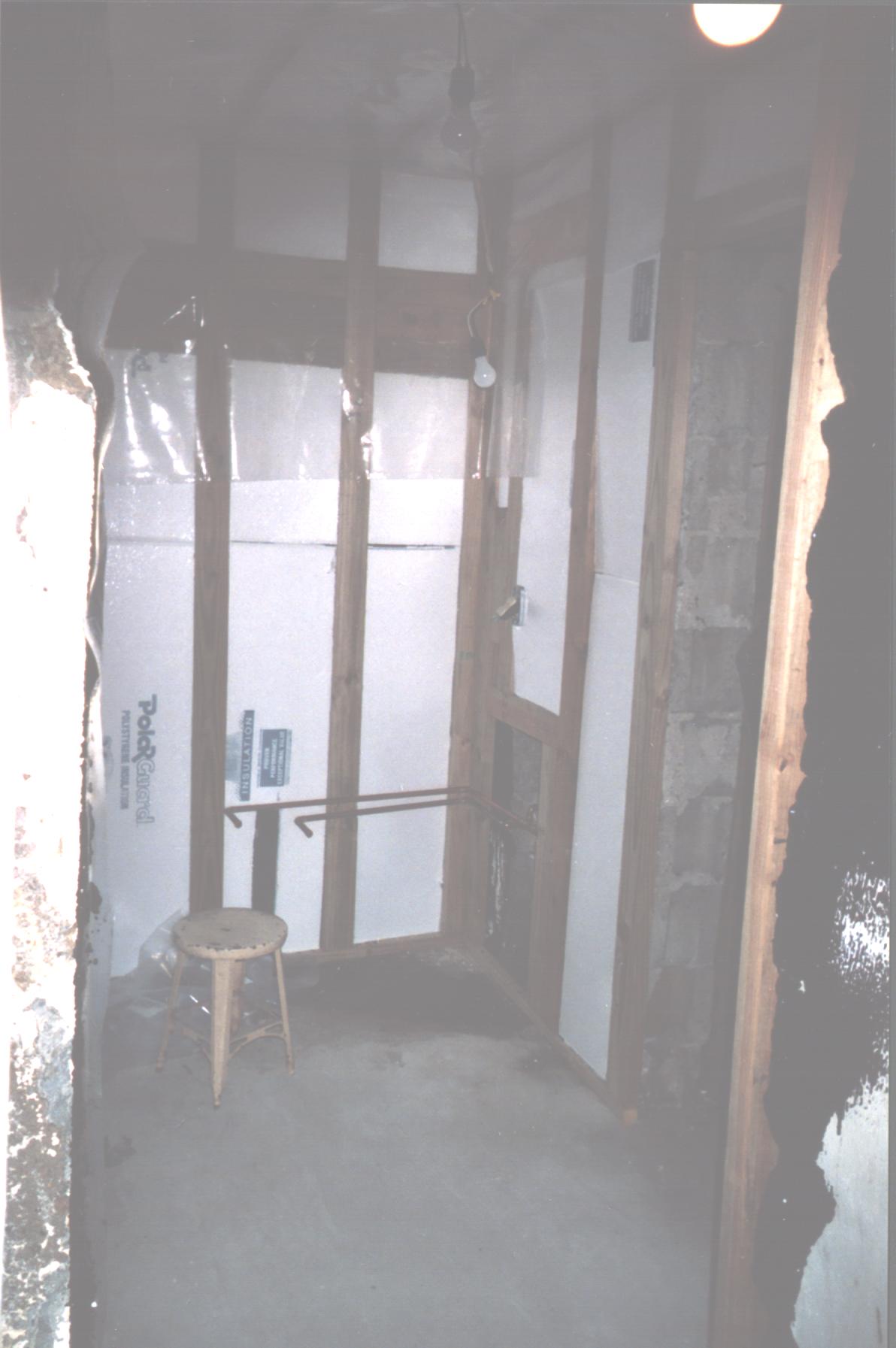 Originally this was two coal cellars separated by a concrete block wall. Some problems to overcome were water seepage and a concrete floor that sloped badly.
